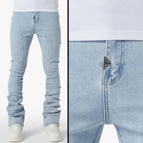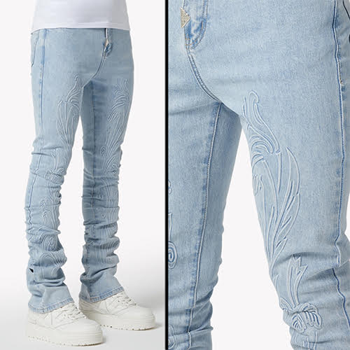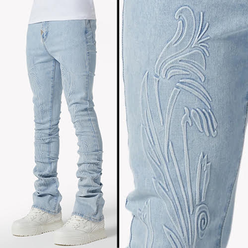 GUAPI AQUA BLUE EMBOSSED FLOWERS DENIM