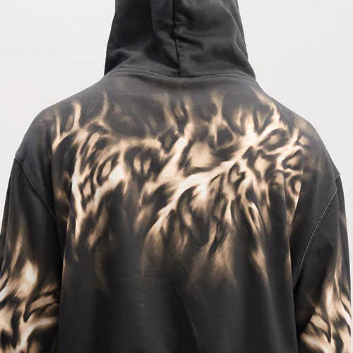 プレミアムな100%コットン生地を使用したオーバーサイズシルエットは、ボディと袖全体に広がる炎のようなタイダイ効果でウォッシュ加工を施しています。