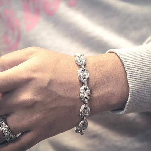 GOLDEN GILT Studded Goochi Link Bracelet - Silver