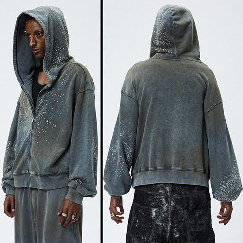 DND4DES DIAMOND DISTRESSED ZIP-UP HOODIE GRAY / ラインストーン ジップアップ パーカー になります。