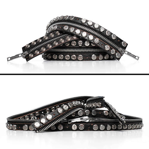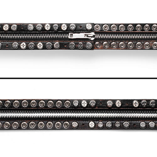 単体ベルトとして着用可能、エクストラロングバージョンに延長可能、または二つに分けて使用可能。スナップボタンで縦に繋ぐか横に繋ぐか、無限のスタイリングが可能です。