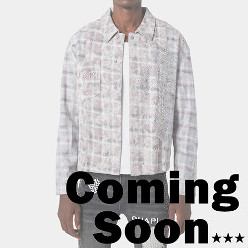 漂白されたライラックとグレーのトーンで仕上げた柔らかな起毛コットンを使用し、きらめく装飾と大胆なグラフィックディテールで格調を高めています。