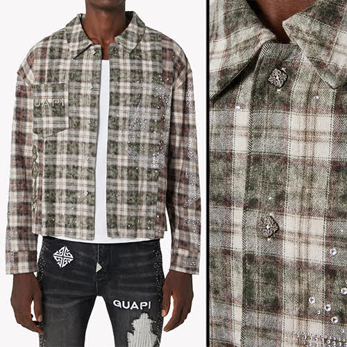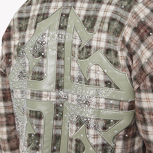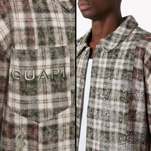 モカクレセントフランネルは、GUAPIの代名詞であるワイルドなフォルムと輝くディテールの融合により、クラシックなチェック柄を再定義します。