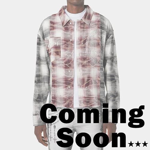ルビークレセントフランネルは、ストリートウェアの荒削りな魅力と天体をモチーフにした芸術性を融合させた大胆なステートメントピース。