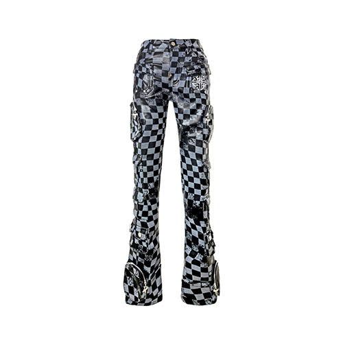 guapi_OBSIDIAN BLACK CHECKERBOARD LEATHER PANT