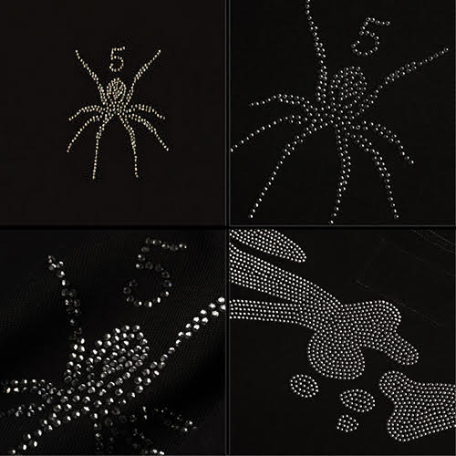 ●前面と背面にラインストーンをあしらったグラフィックデザイン。