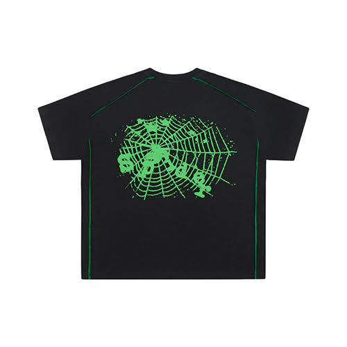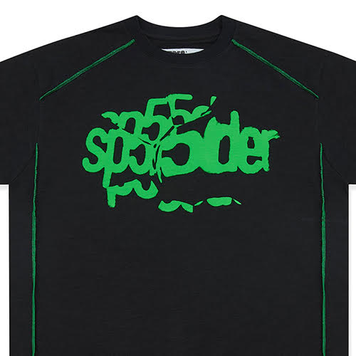 SP5DER BLACK CONTRAST STITCH SLUB TEE