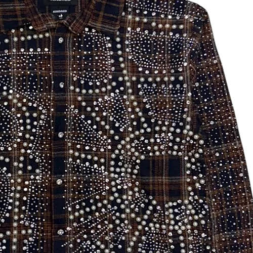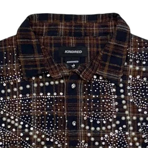 KINDRED_RHINESTONE & PEARL FLANNEL SHIRTS_BROWN